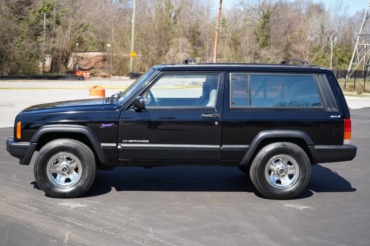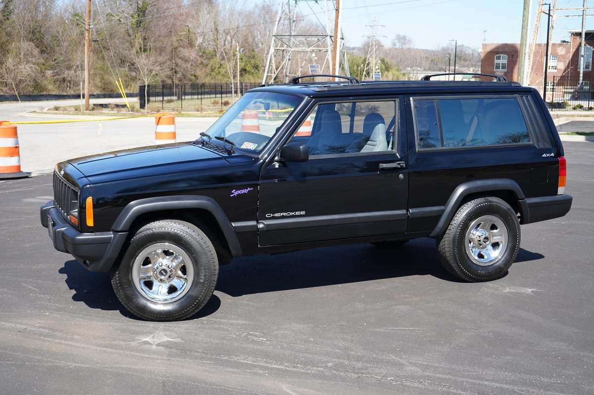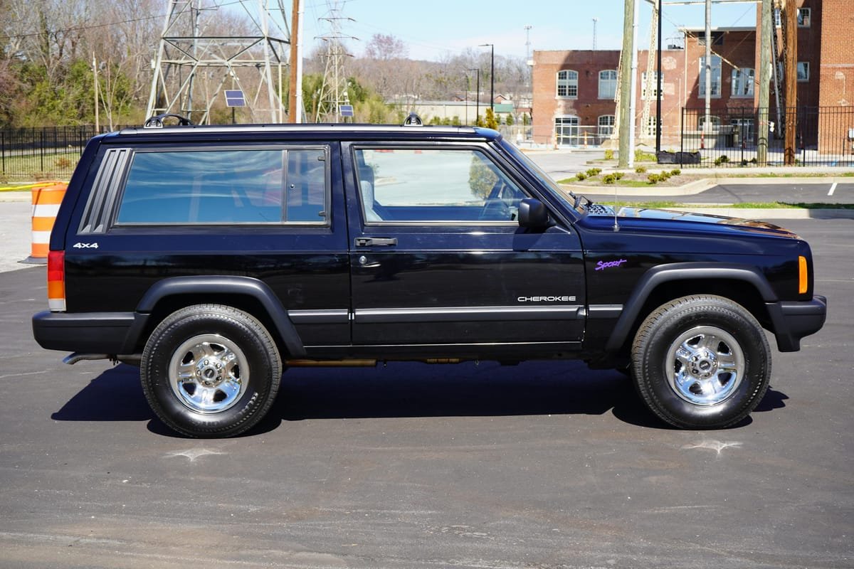 THIS… is a 1998 Jeep Cherokee Sport 4×4, finished in Black Clearcoat with an Indigo and Linen interior.