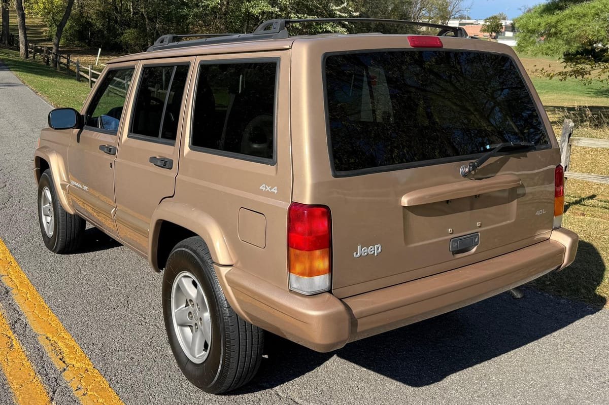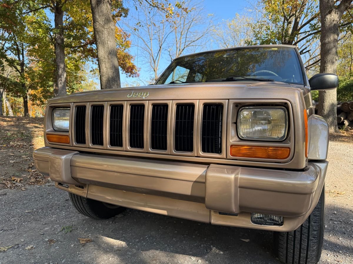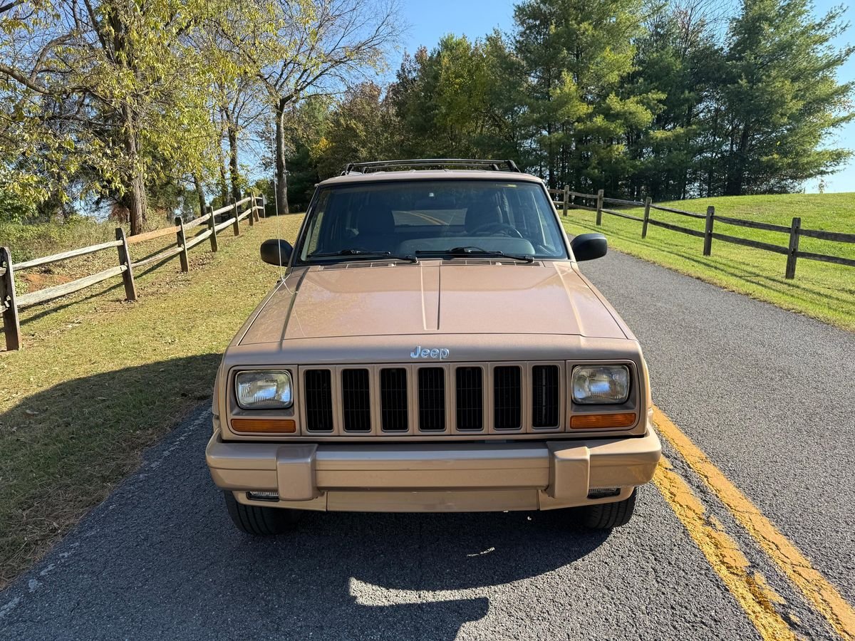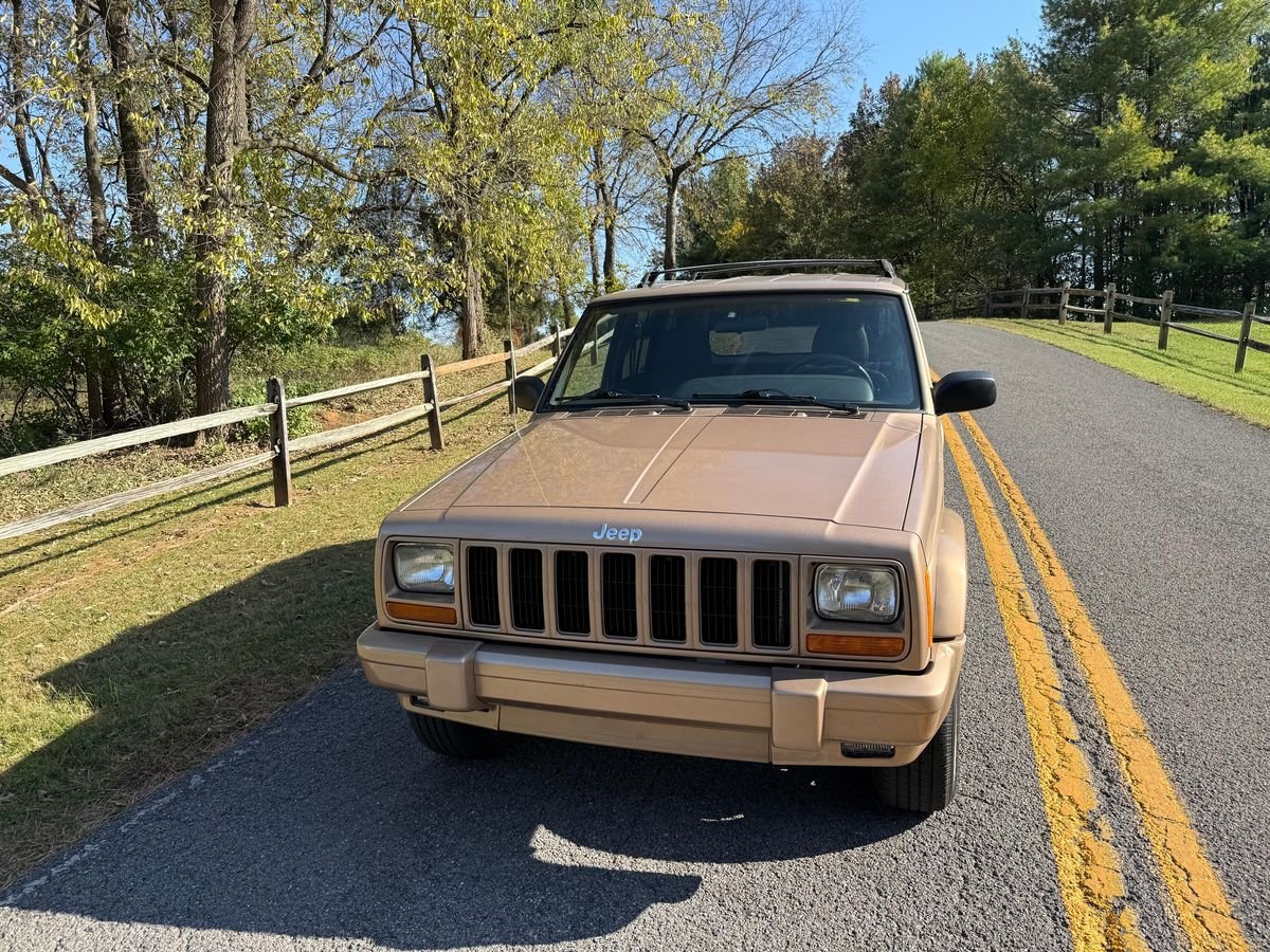 THIS… is a 1999 Jeep Cherokee Classic 4×4, finished in Desert Sand Pearl Coat with an Agate interior.