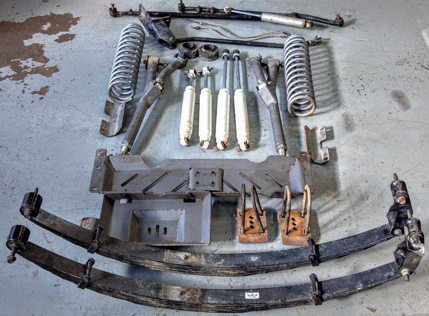 pulled this kit off a parts vehicle. Kit is complete as comes from Rough Country, has all hardware. Also includes front coil spaces and stock steering components that isn’t included in original kit. Shocks are not original but are correct for the kit and in almost new condition